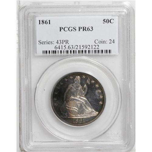 1861 50C PR63 PCGS. The left side of the obverse has c