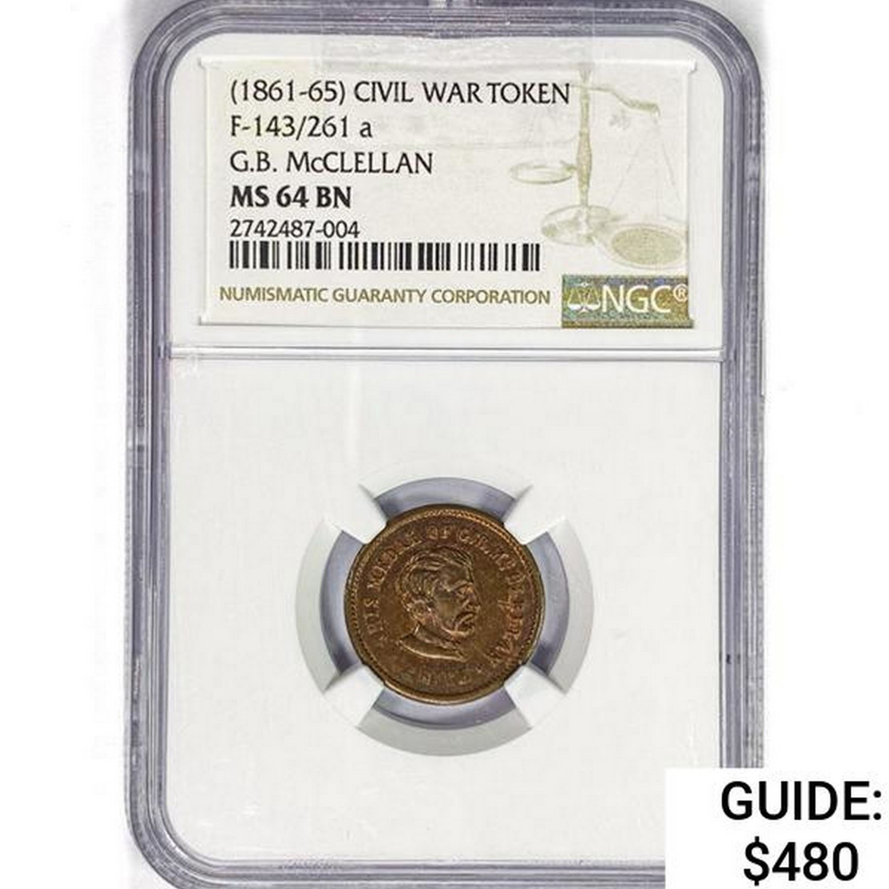1861-65 Civil War Token NGC MS64 BN, F-143/261 a