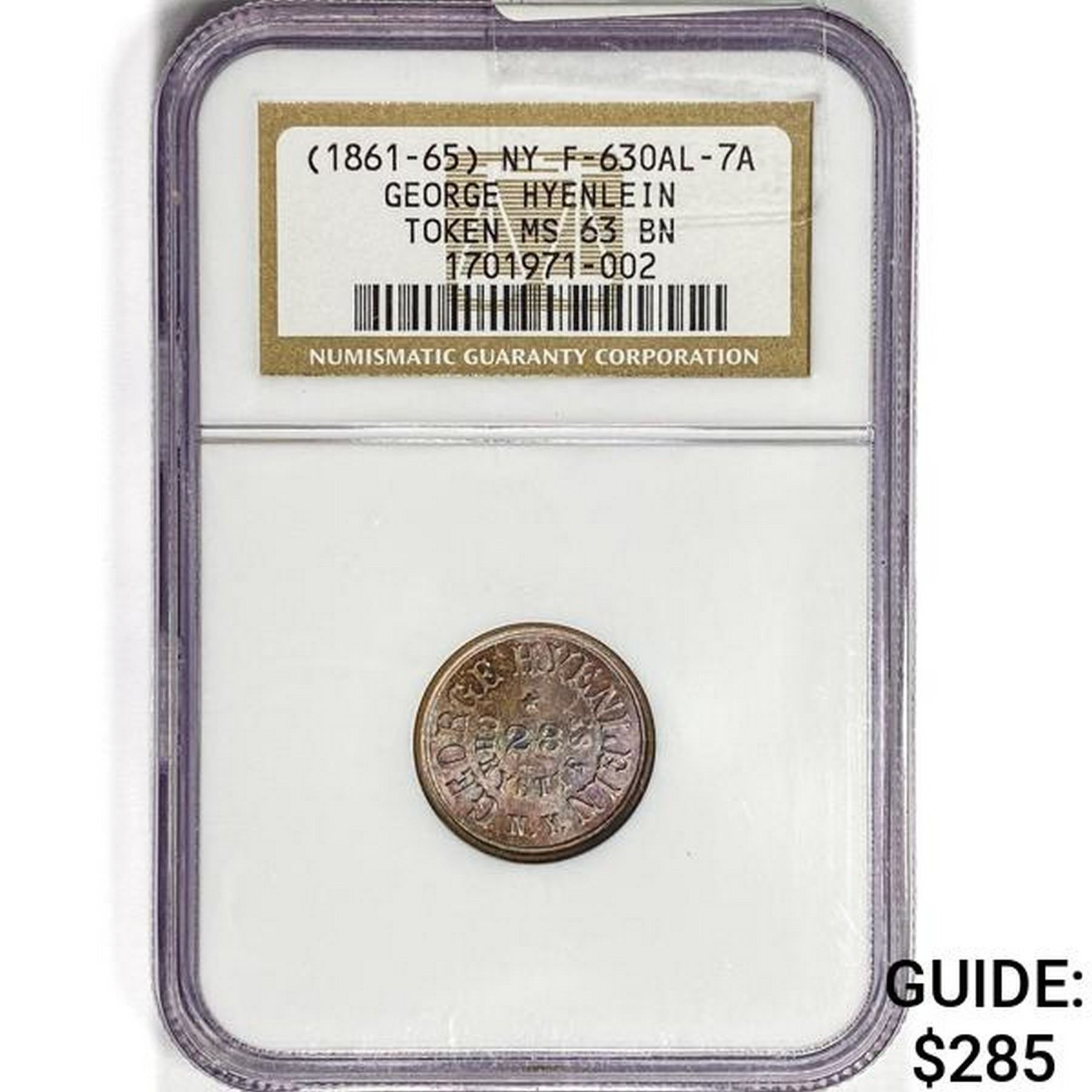 1861-65 NY Token F-630AL-7A NGC MS63 BN