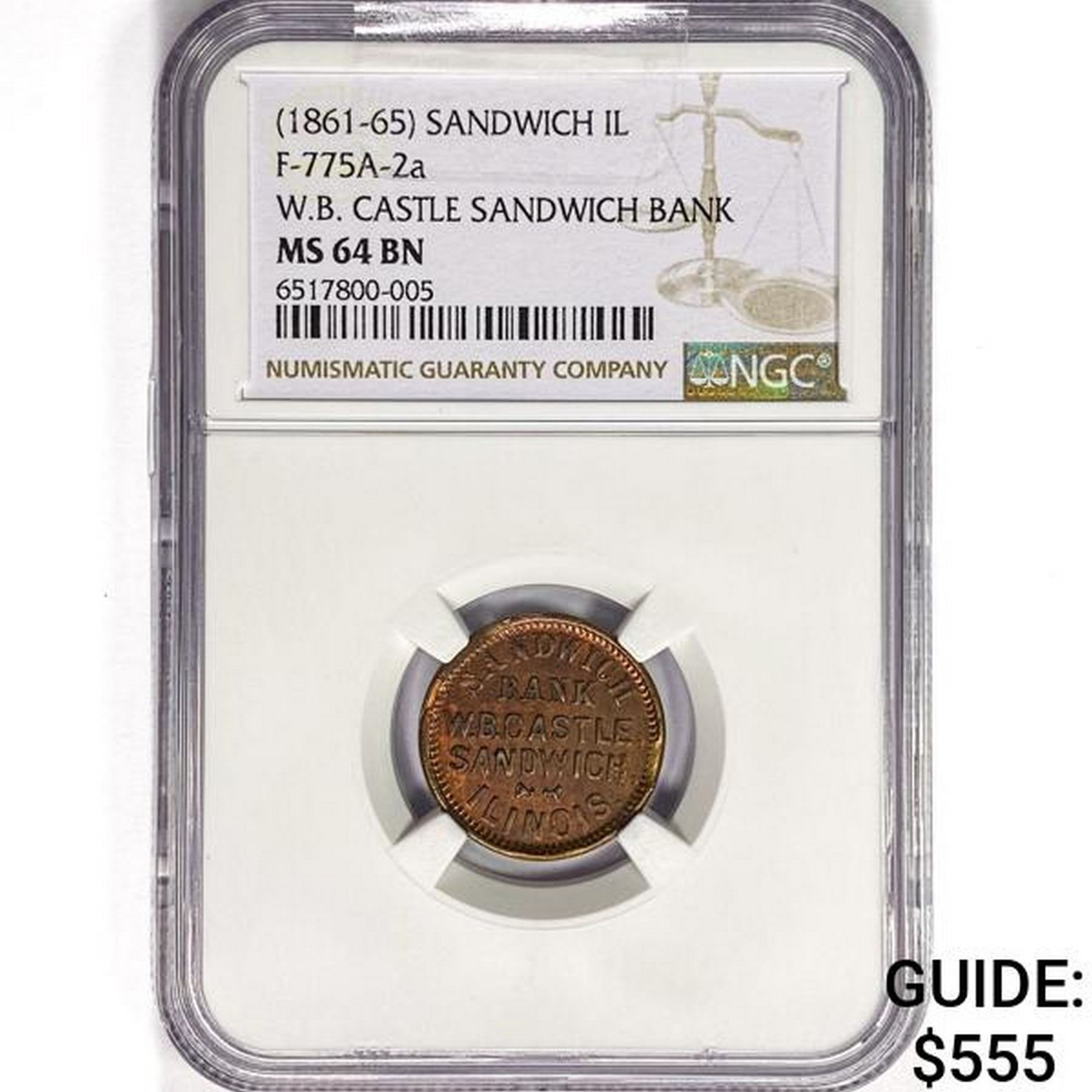 1861-65 Sandwich IL Token NGC MS64 BN, F0775A-2a