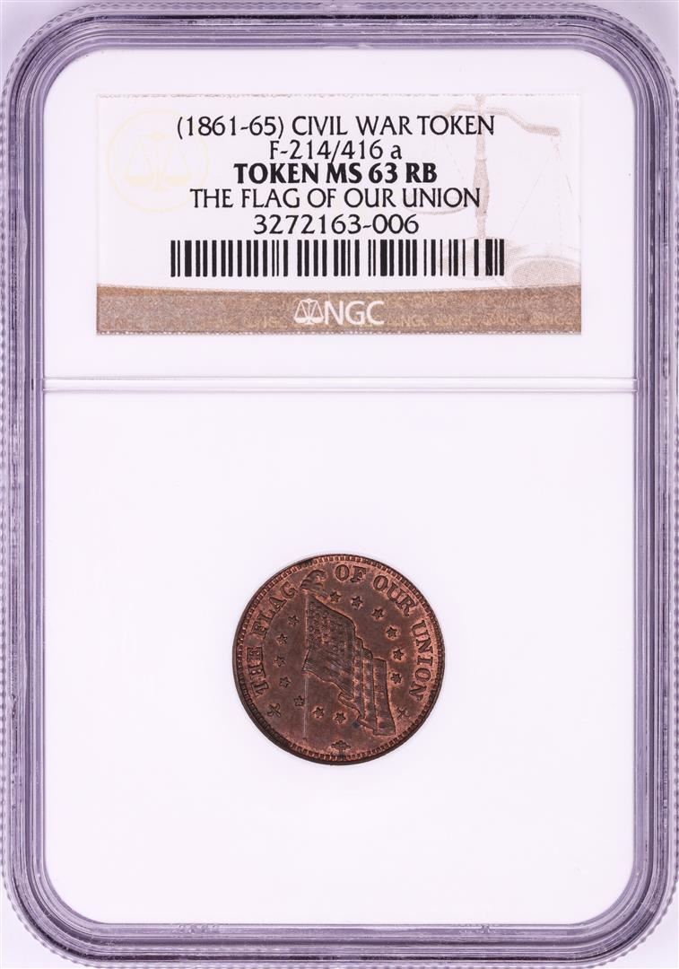One 1861-65 The Flag of Our Union Civil War Token NGC MS63 RB F-214/416a. NGC Certified.