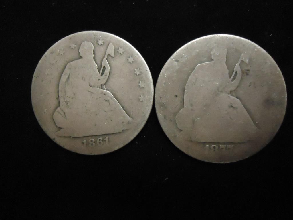 1861 & 77 SEATED LIBERTY HALF DOLLARS