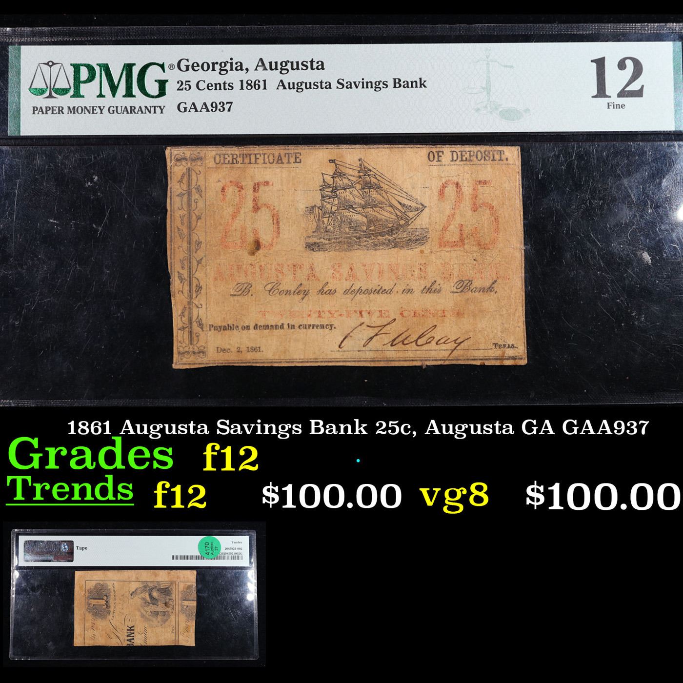 1861 Augusta Savings Bank 25c, Augusta GA GAA937 Graded f12 By PMG