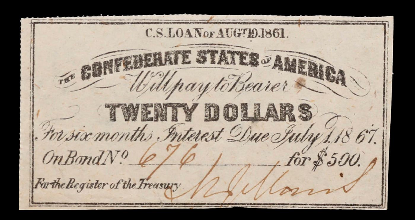 1861 C.S.A. $20 Intrest Note Grades vf++.