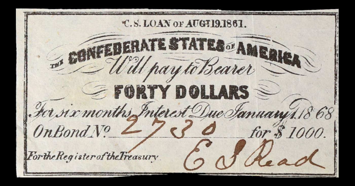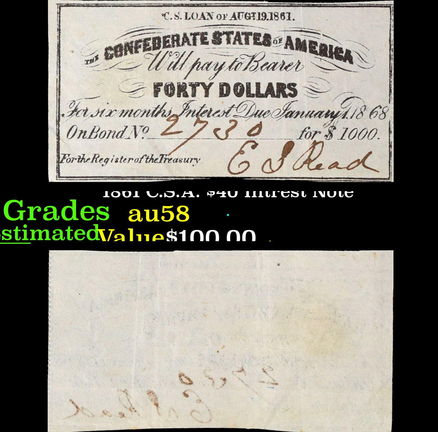 1861 C.S.A. $40 Intrest Note Grades Choice AU/BU Slider.