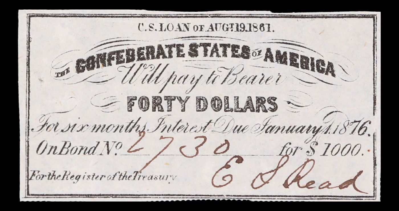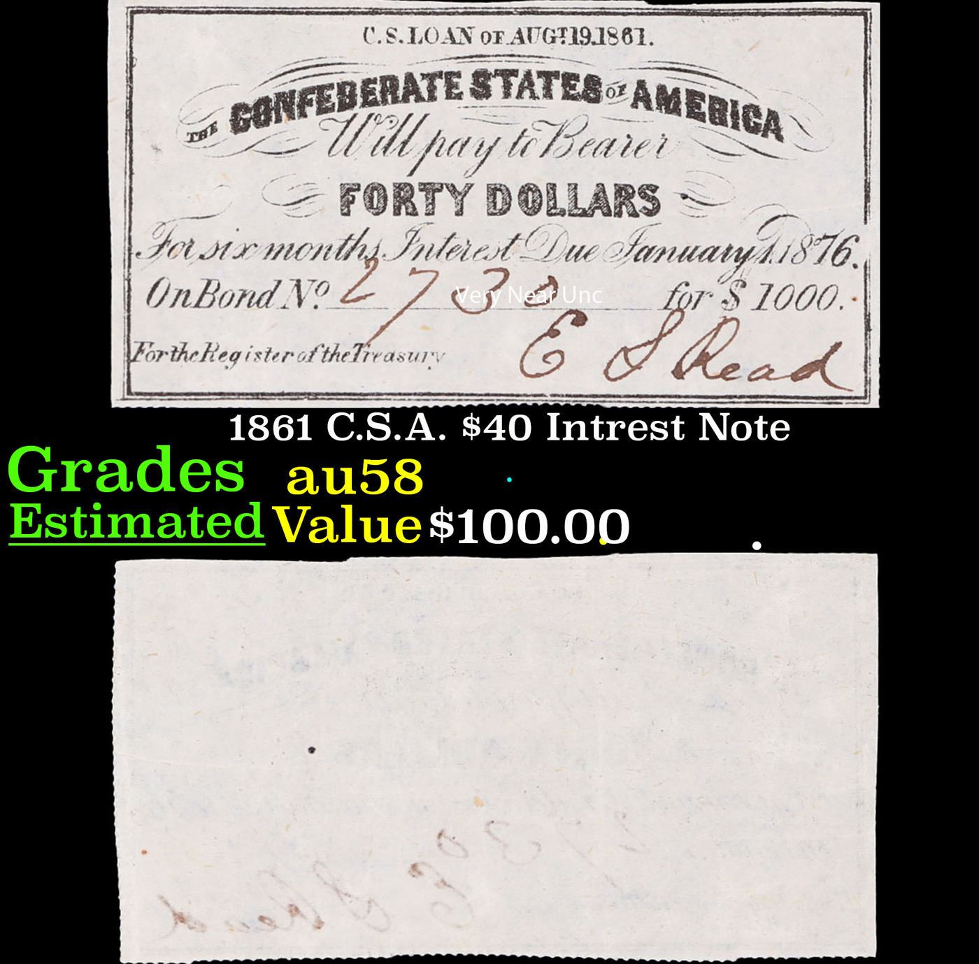 1861 C.S.A. $40 Intrest Note Grades Choice AU/BU Slider.