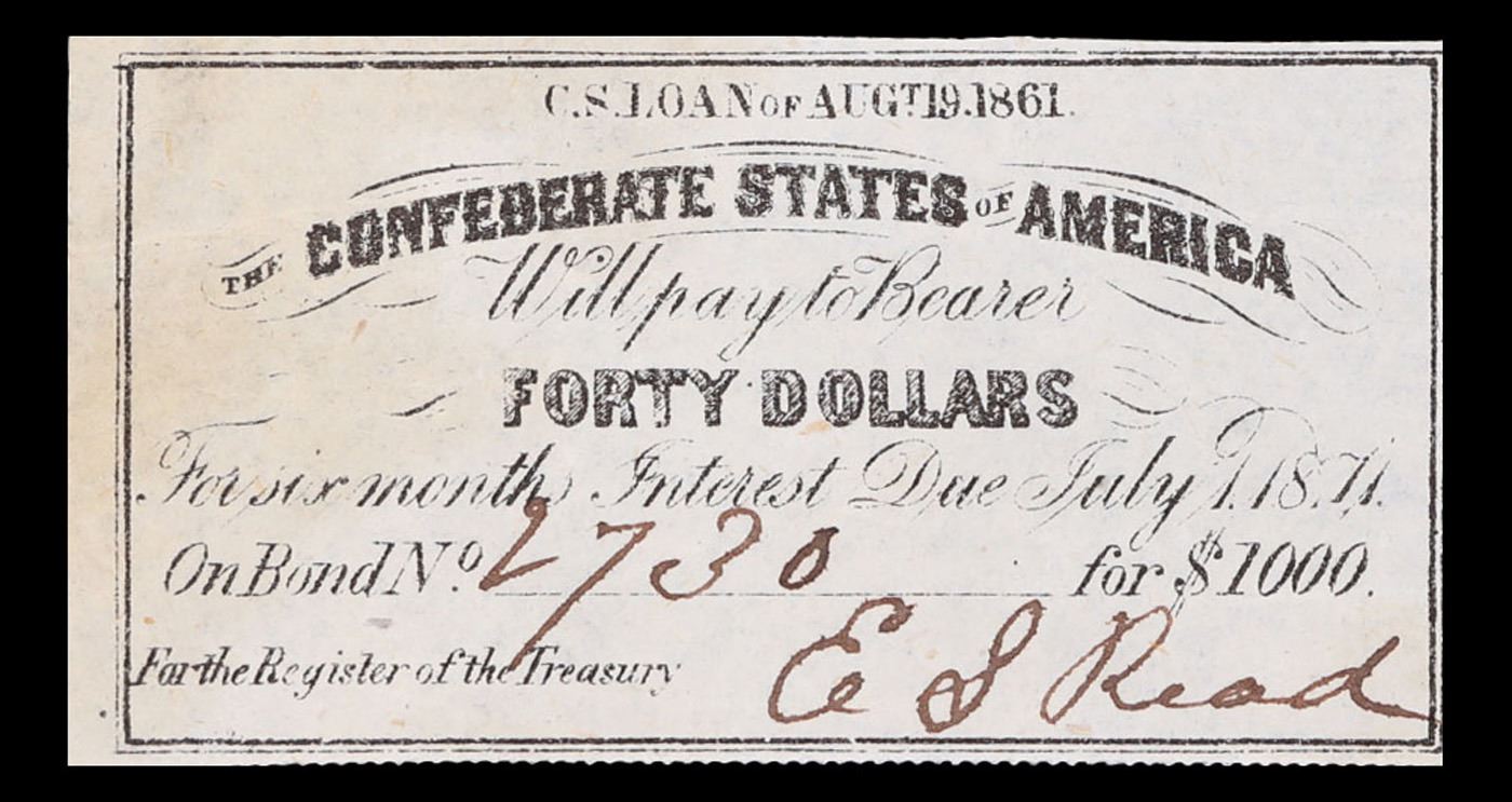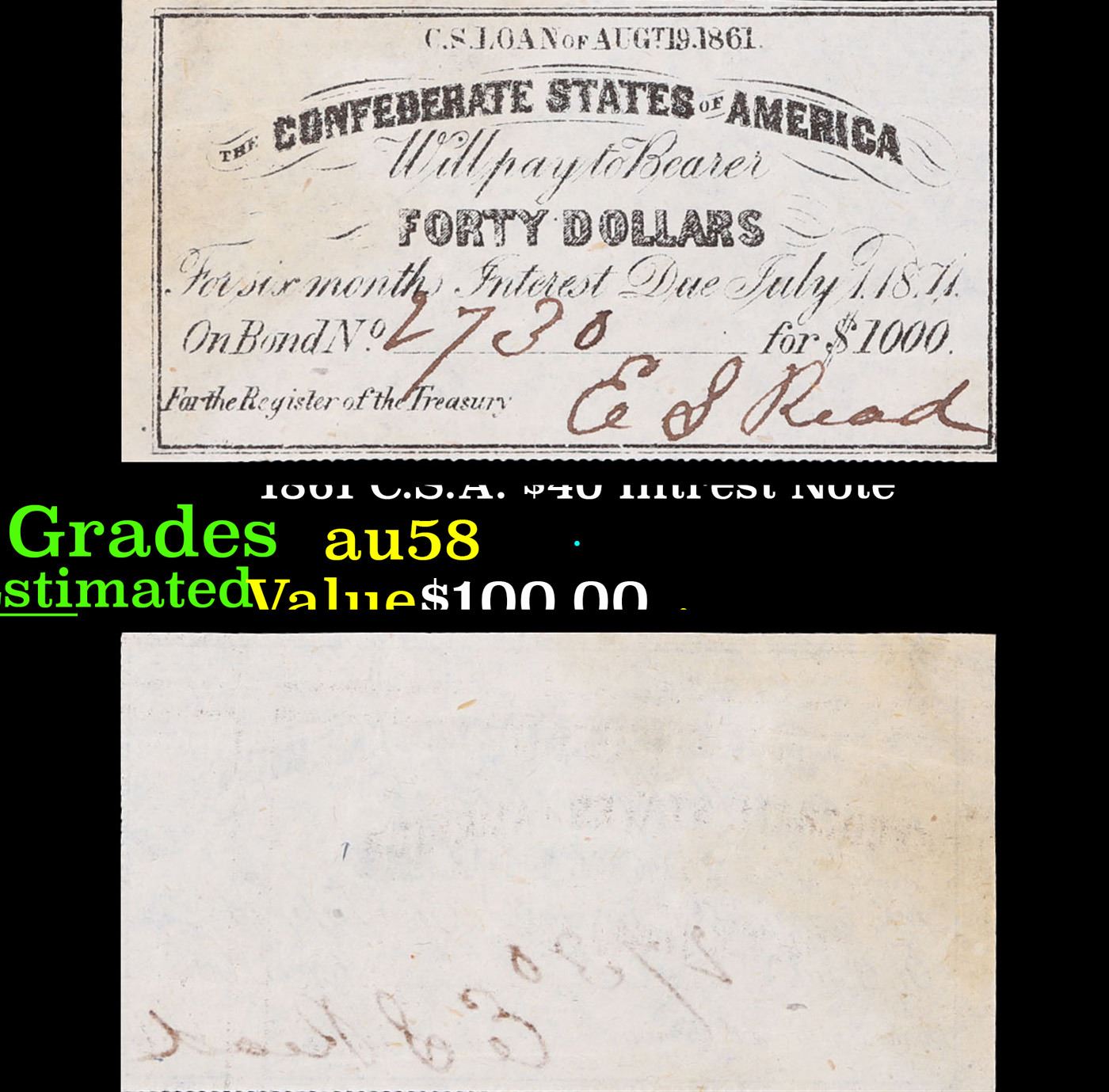 1861 C.S.A. $40 Intrest Note Grades Choice AU/BU Slider.