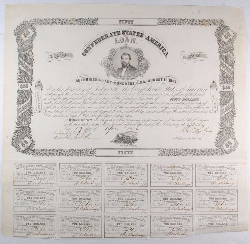 1861 CONFEDERATE $50.00 BOND, CR-18, B-71 J.H. REAGAN POSTMASTER VF R-5 RARE!!