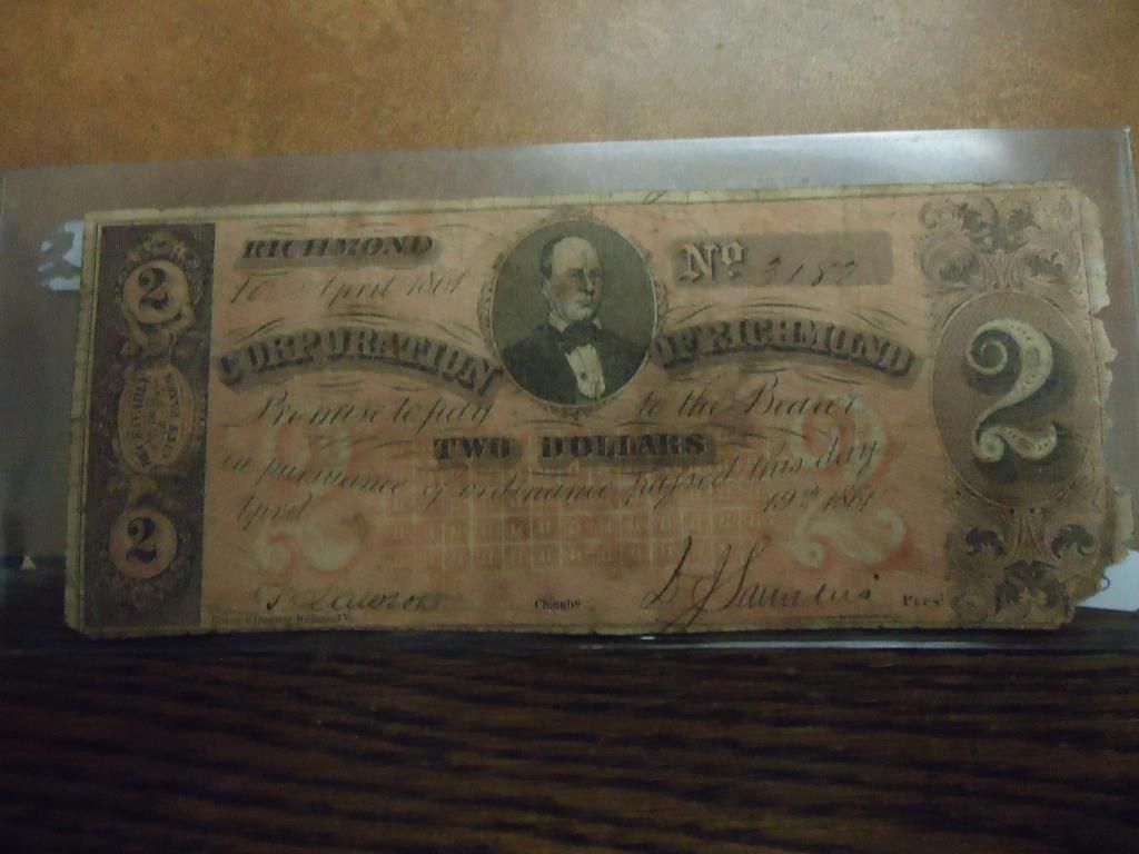1861 CORP. OF RICHMOND $2 OBSOLETE BANK NOTE