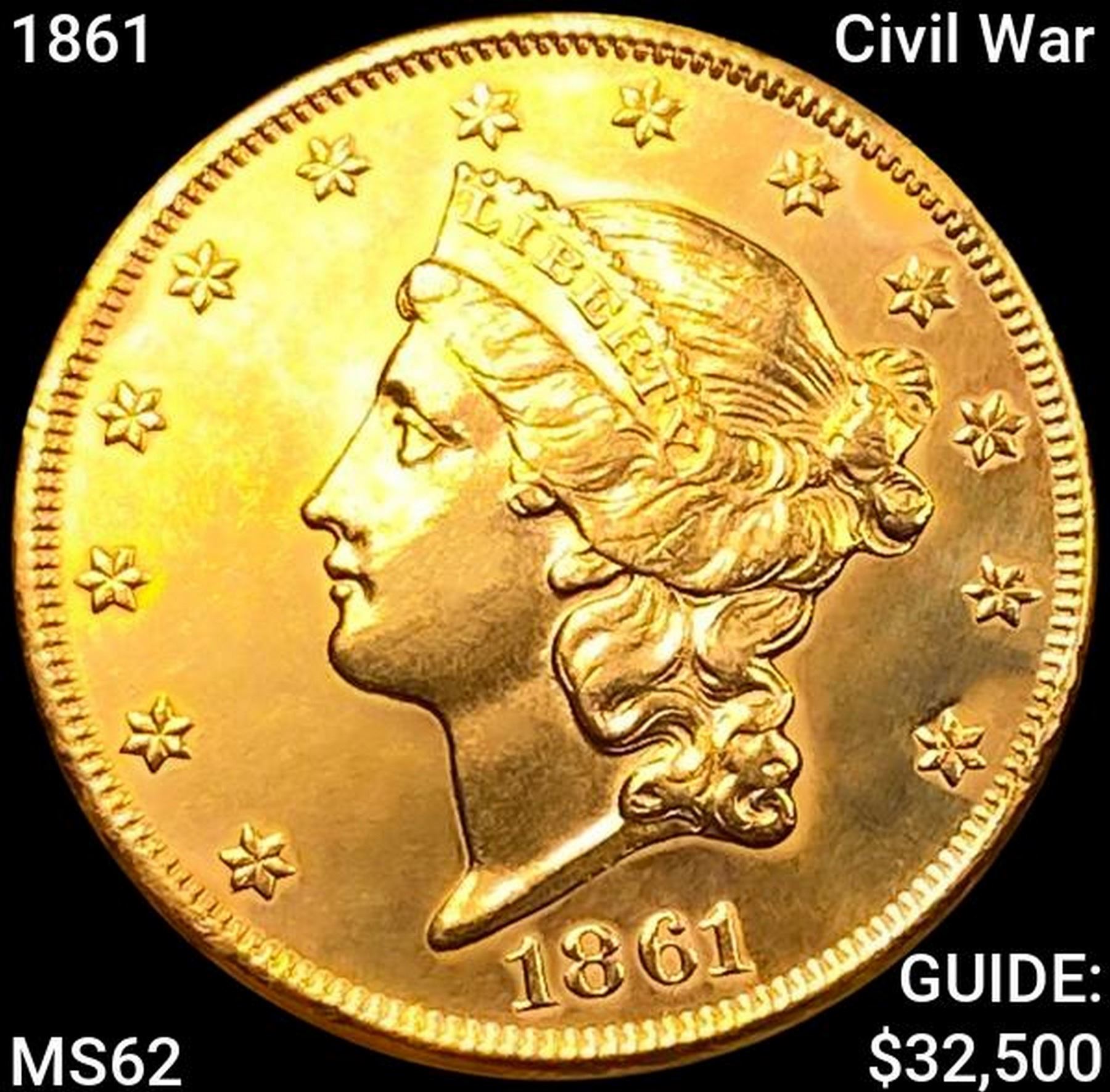 1861 Civil War $20 Gold Double Eagle UNCIRCULATED