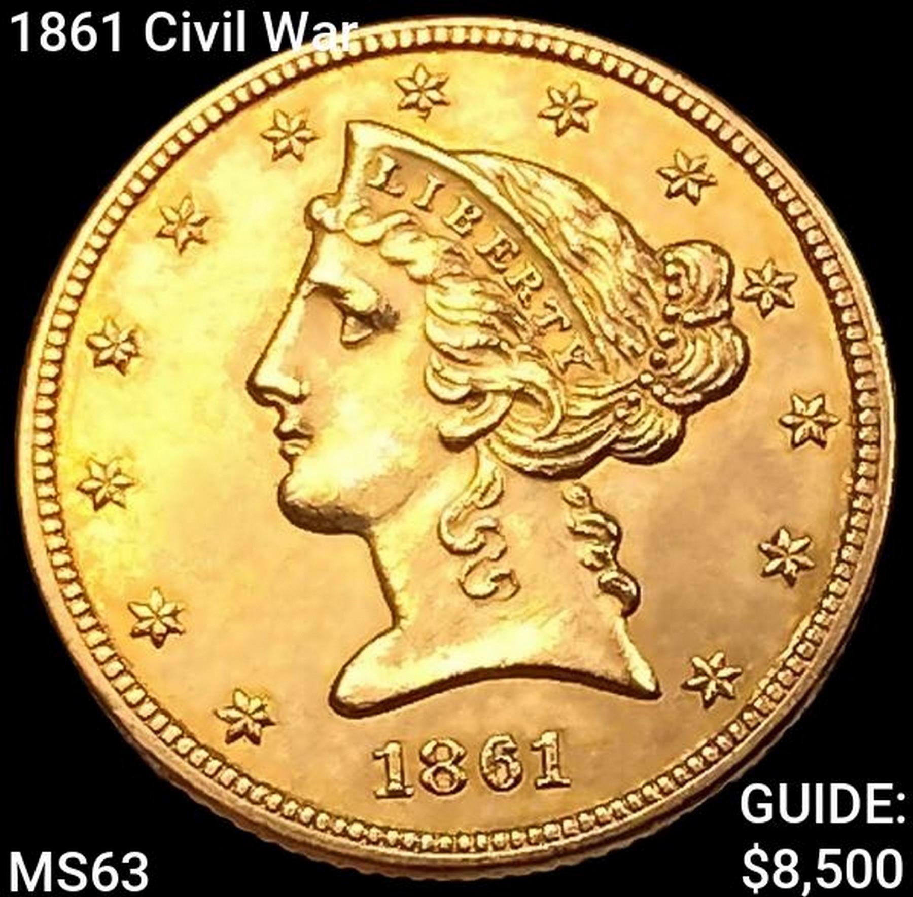 1861 Civil War $5 Gold Half Eagle CHOICE BU
