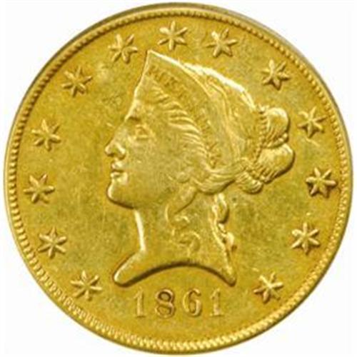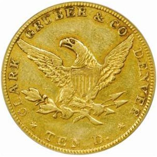 1861 Clark, Gruber & Co $10 Gold. AU50 PCGS CAC