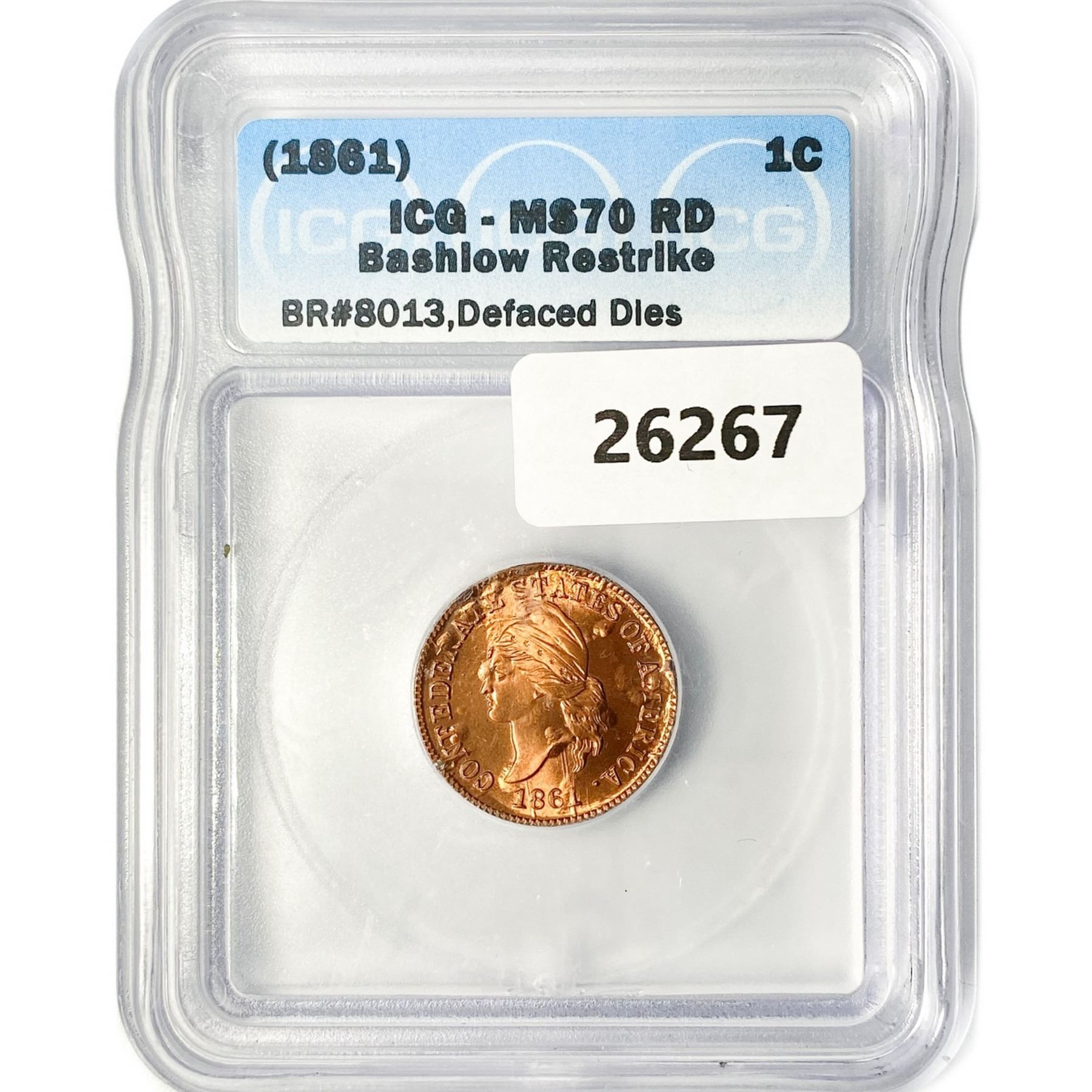 1861 Confederate 1 Cent ICG MS70 RD, BR#8013