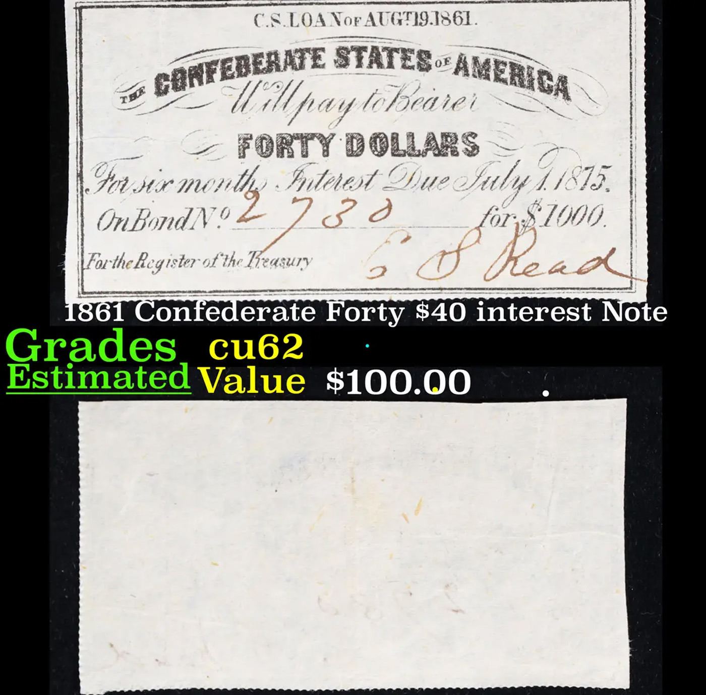 1861 Confederate Forty $40 interest Note Grades Select CU.