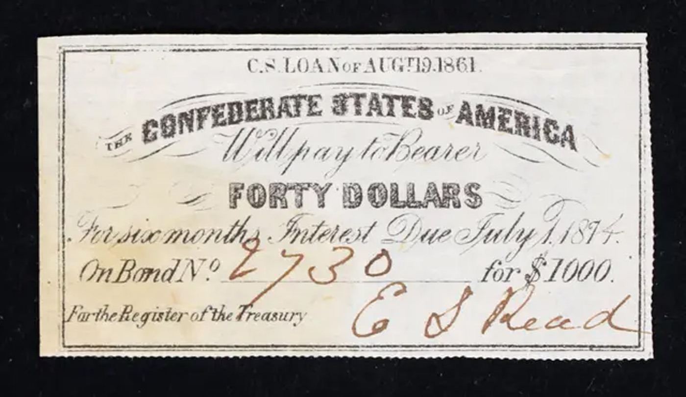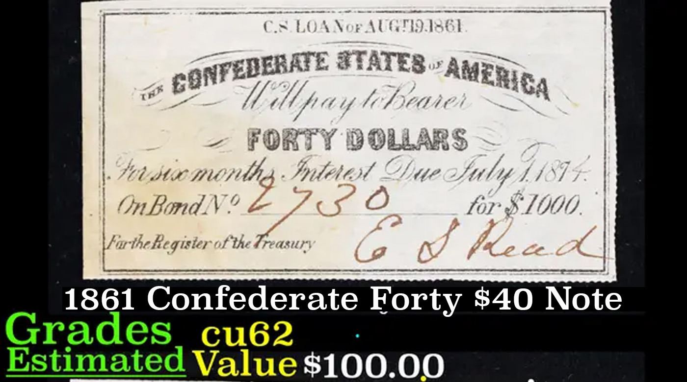 1861 Confederate Forty $40 interest Note Grades Select CU.