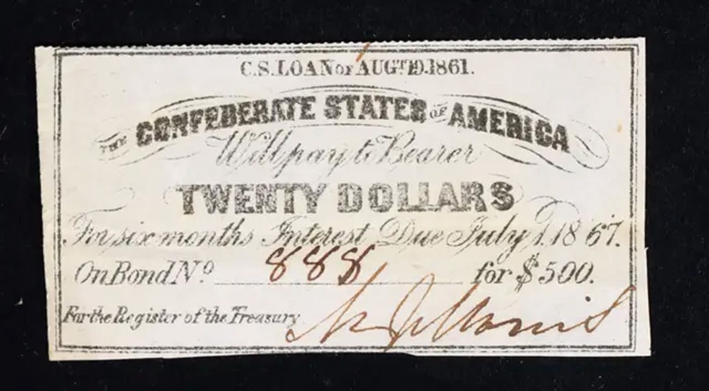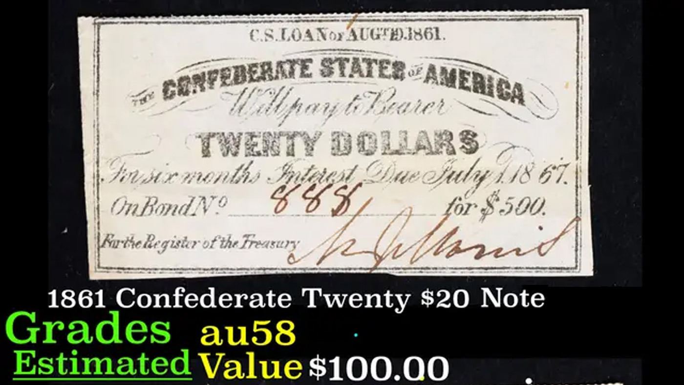1861 Confederate Twenty $20 interest Note Grades Choice AU/BU Slider.