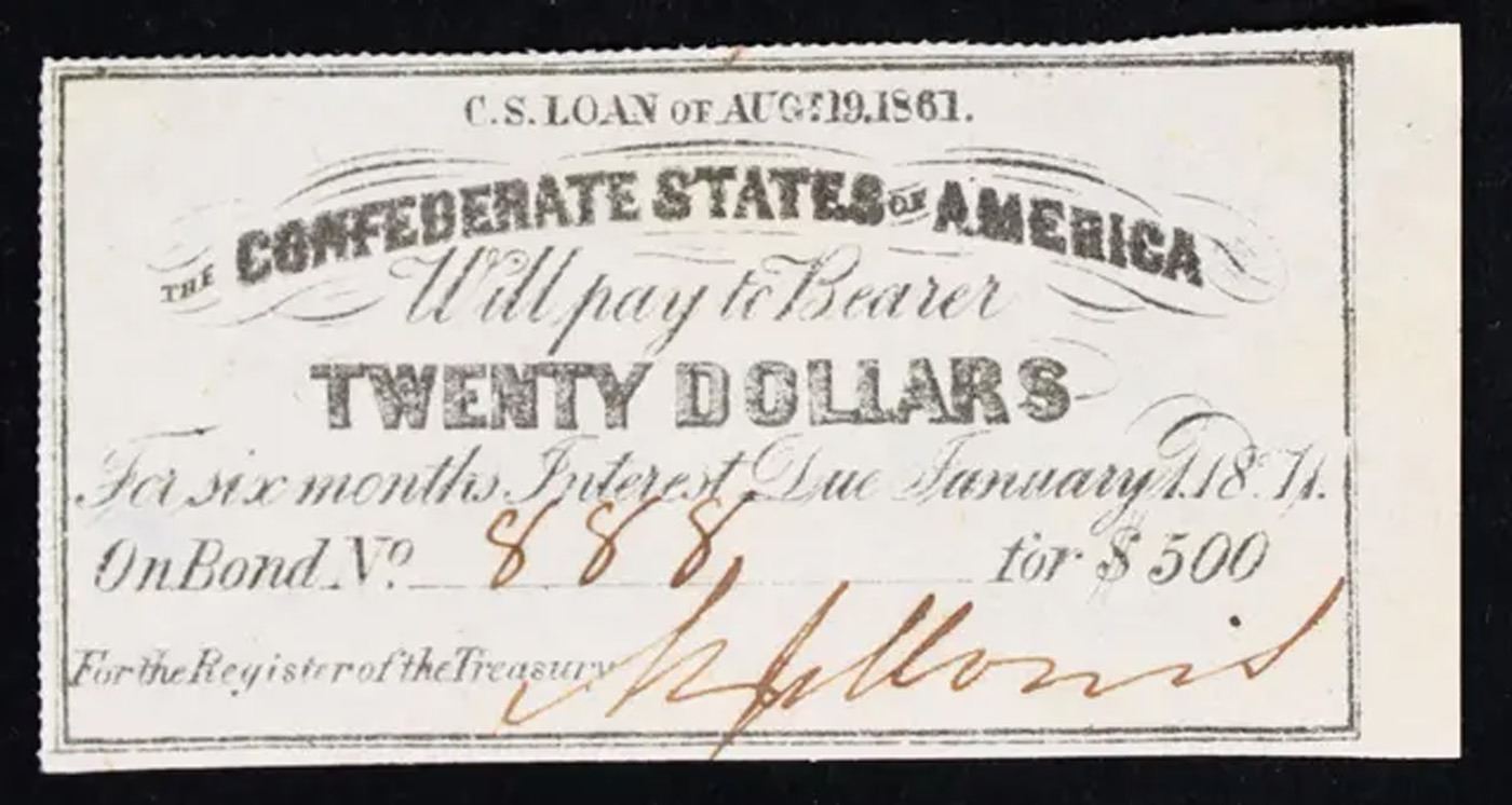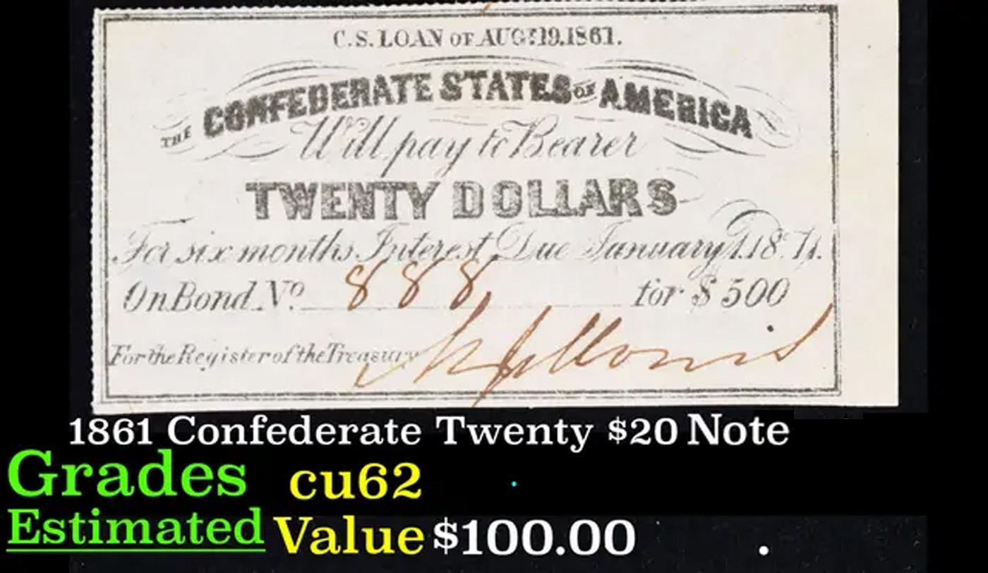 1861 Confederate Twenty $20 interest Note Grades Select CU.