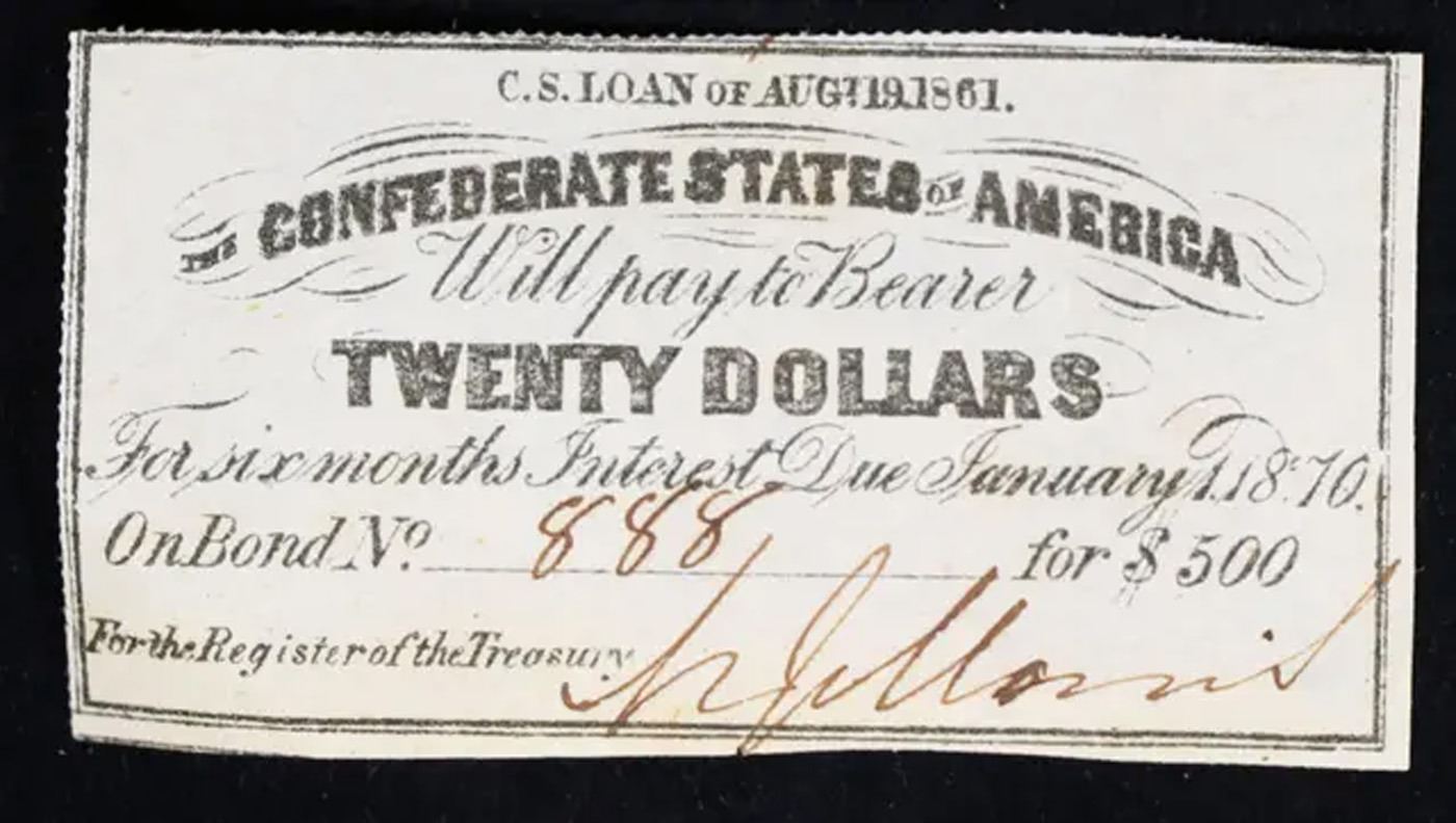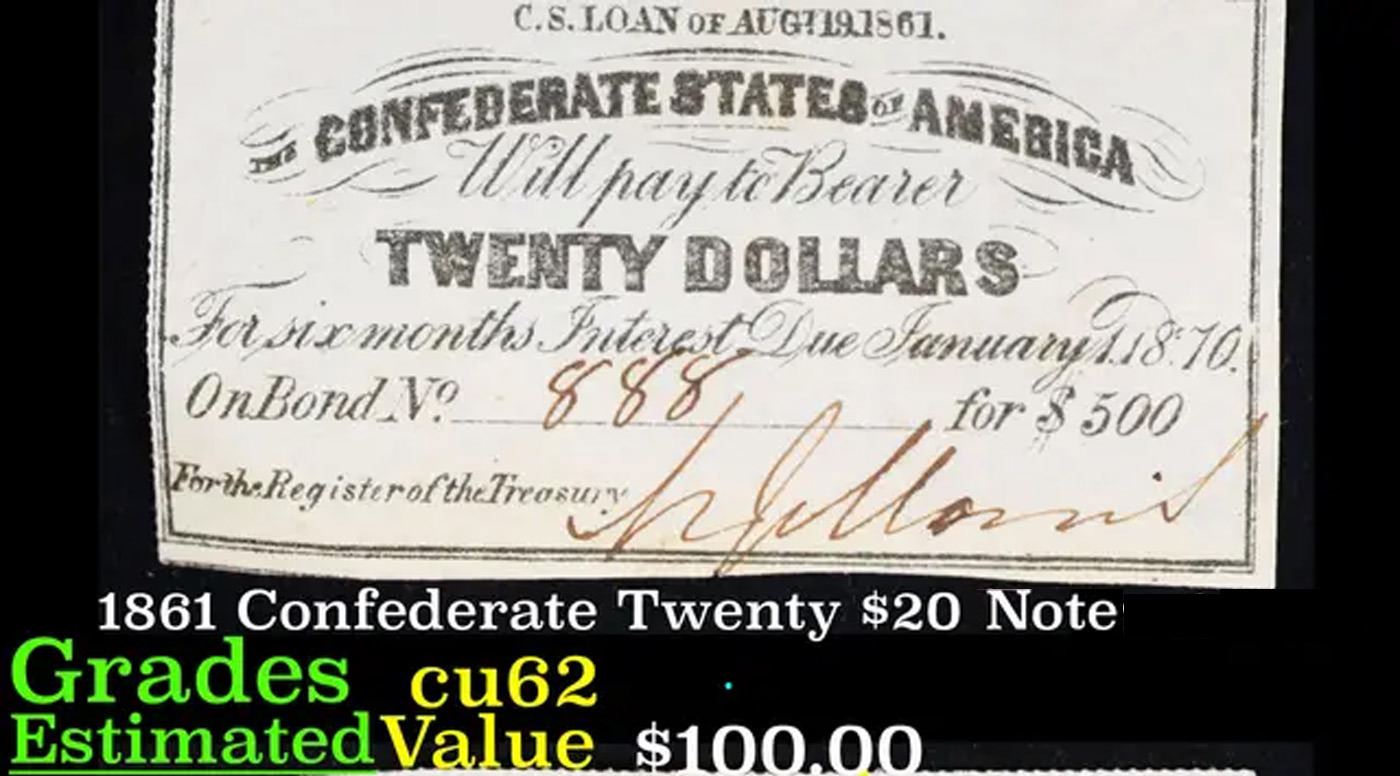 1861 Confederate Twenty $20 interest Note Grades Select CU.