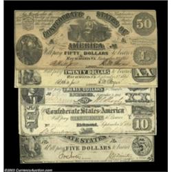 <TABLE cellSpacing=0 cellPadding=0 width="100%" bgColor=#000000 border=0><TBODY> <TR><TD width="100%"><TABLE cellSpacing=1 cellPadding=3 width="100%" border=0><TBODY><TR><TD width="100%" bgColor=#79735c><FONT face=arial color=#ffffff size=3><B>Description</B> </FONT></TD></TR><TR><TD width="100%" bgColor=#ffffff><FONT face=arial size=2><B>1861 Confederate Types.</B></I><BR>T14 $50 Crisp Uncirculated, edge tear and small foxing hole<BR>T18 $20 Very Fine, small edge tear<BR>T20 $20 Crisp Uncirculated, CC<BR>T29 $10 Very Fine, two small spindle holes and minor edge fraying<BR>T36 $5 About Uncirculated<BR>(450-650 ) (5 notes) </FONT></TD></TR></TBODY></TABLE></TD></TR></TBODY></TABLE><BR><TABLE cellSpacing=0 cellPadding=0 width="100%" bgColor=#000000 border=0><TBODY><TR> 5 notes Important notice: Heritage usually auctions material at the rate of 200-250 lots per hour. On some occasions eBay Live bid software or the Internet may not be able to keep up with the pace of the auction. We recommend placing a realistic absentee bid now as insurance to avoid disappointment. Occasionally the auctioneer may eliminate or reject an eBay Live bid, and the auctioneer may also reopen a lot after the close of the eBay live bidding (usually because we missed an audience bid), and may reject your bid even if it shows you as the winning bidder. By bidding via eBay Live, you agree that Heritage may award the lot to another bidder at its sole discretion under the circumstances described above or any other reasonable circumstances. Also please note that all Heritage lots purchased through eBay Live carry a 20% Buyer's Premium. Please make sure you read the Terms and Conditions before you bid.</TR></TBODY></TABLE>