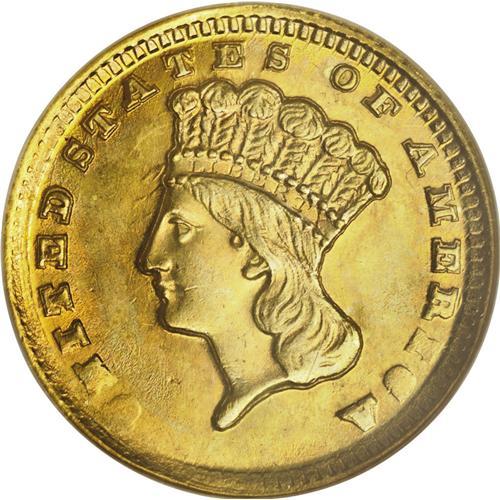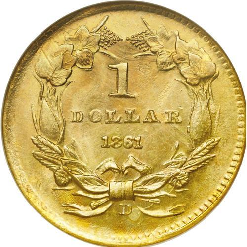 "1861-D G$1 MS65 NGC. Variety 12-Q, the "