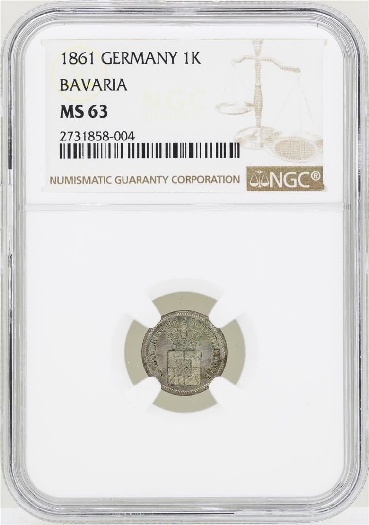 One 1861 Germany Kreuzer Bavaria Coin NGC MS63. NGC Certified.