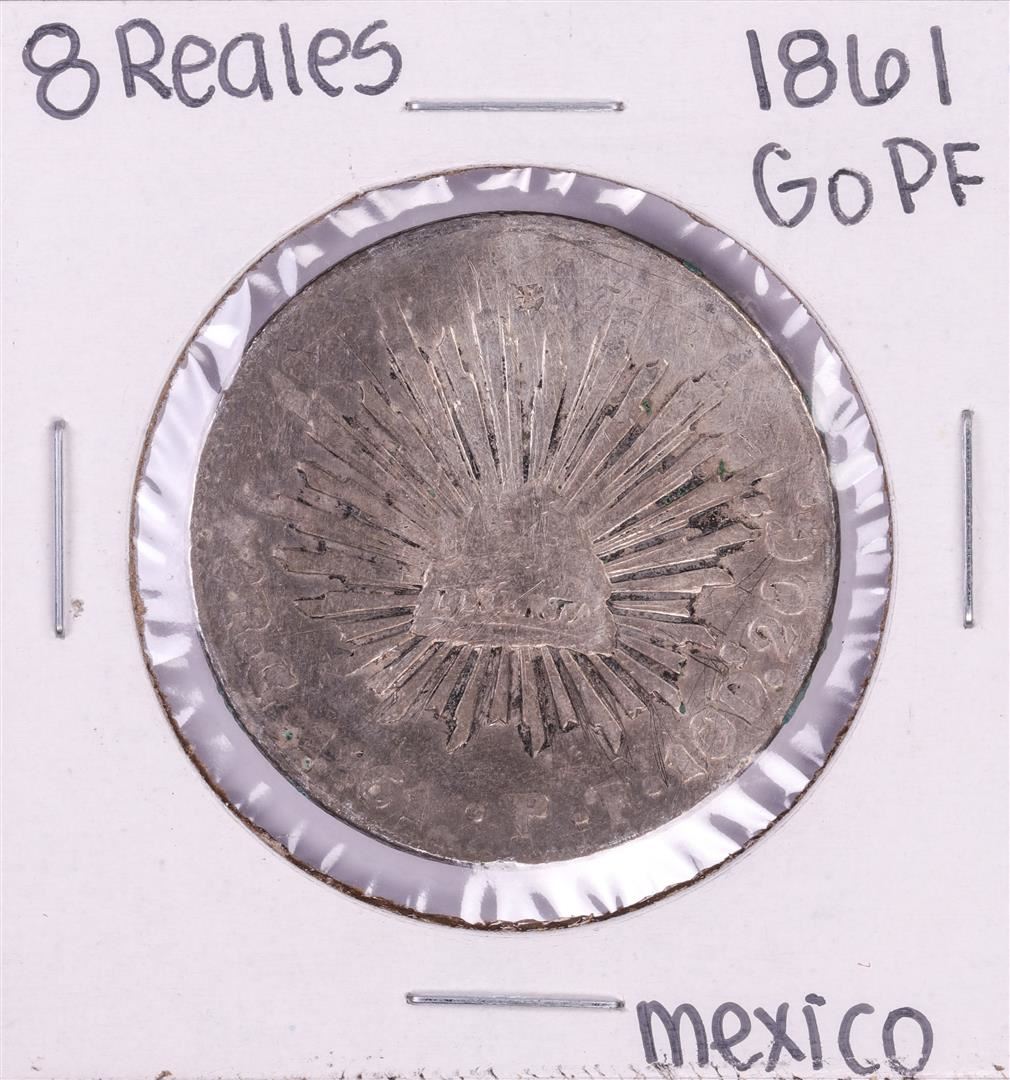 One 1861 Go PF Mexico 8 Reales Silver Coin.
