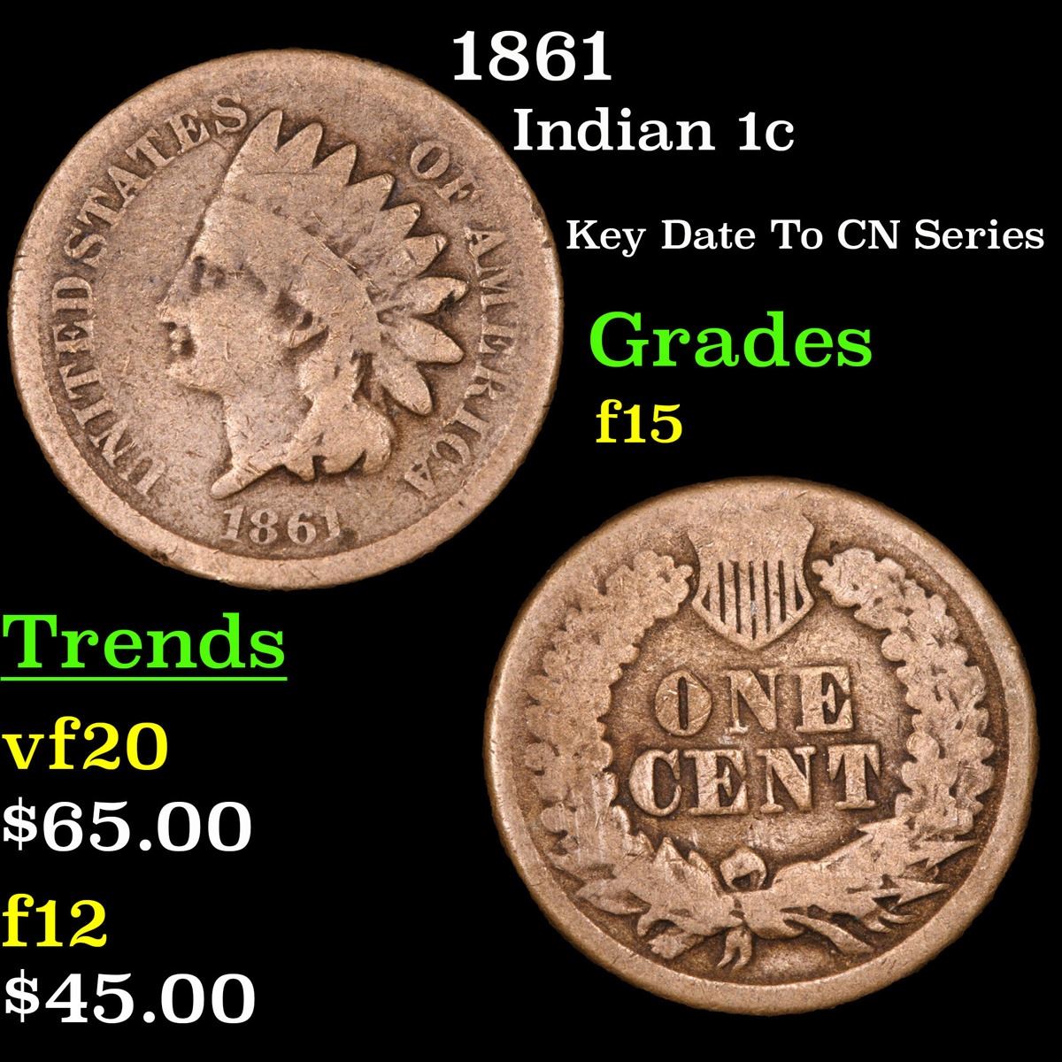 1861 Key Date To CN Series . Indian Cent 1c Grades f+. Key Date. According to David Hall, The 1861 is the lowest mintage of the 1860-64 copper-nickel Indian cents. It is the rarest copper-nickel Indian cent in circulated grades."