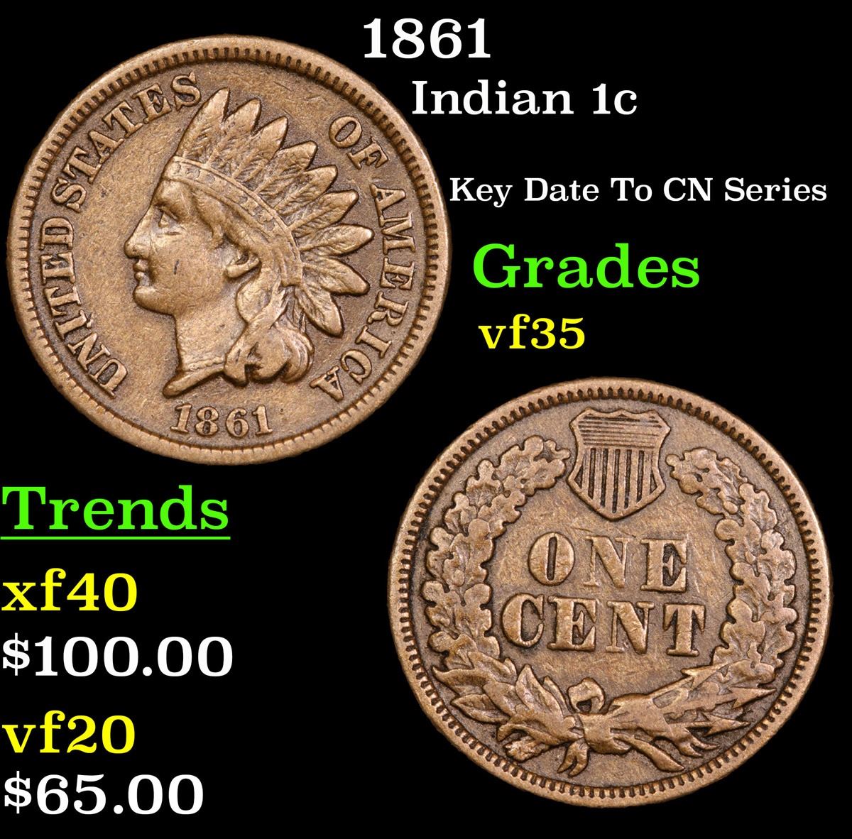 1861 Key Date To CN Series . Indian Cent 1c Grades vf++. Key Date. According to David Hall, The 1861 is the lowest mintage of the 1860-64 copper-nickel Indian cents. It is the rarest copper-nickel Indian cent in circulated grades."