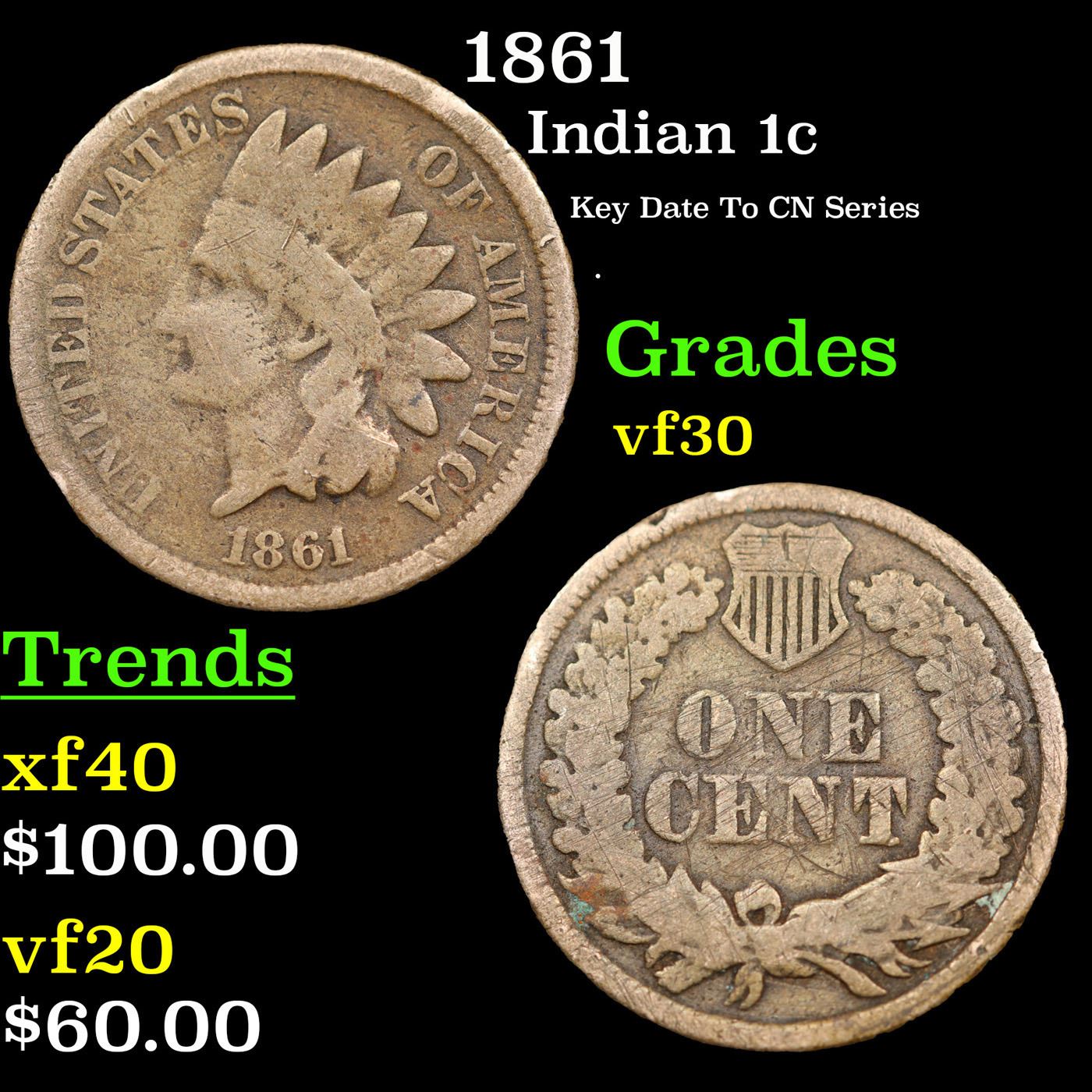 1861 Indian Cent 1c Grades vf++. Key Date. According to David Hall, The 1861 is the lowest mintage of the 1860-64 copper-nickel Indian cents. It is the rarest copper-nickel Indian cent in circulated grades."