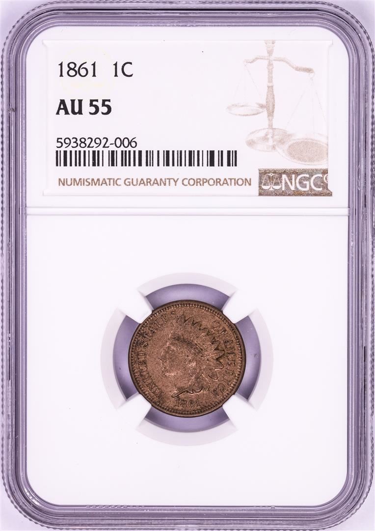 One 1861 Indian Head Cent Coin NGC AU55. NGC Certified.