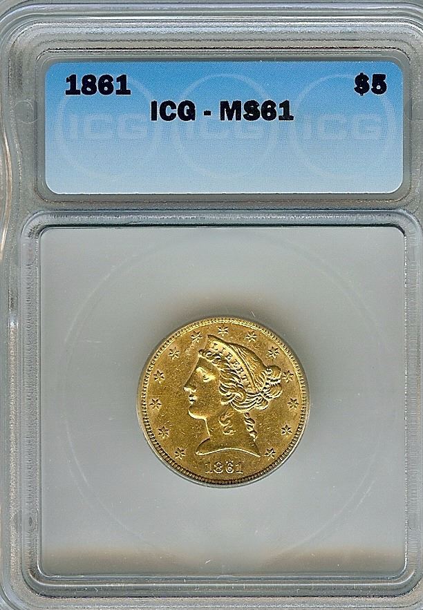 1861 LIBERTY GOLD $5 ICG MS61