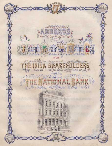 1861. Manuscript Address to Joseph Neale McKenna from Bank Shareholders of the National Bank of Ireland