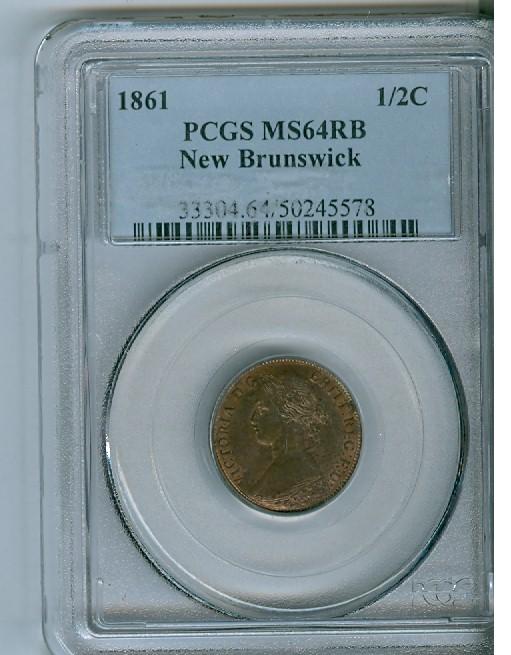 1861 N.B. 1/2¢ PCGS MS64RB. 60% red lustre, a very nice example.