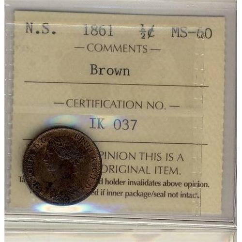 1861 N.S. ½¢ ICCS MS60. Brown in colour.