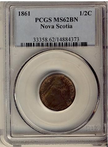 1861 NS 1/2¢ PCGS MS62BN. Shows trace red.