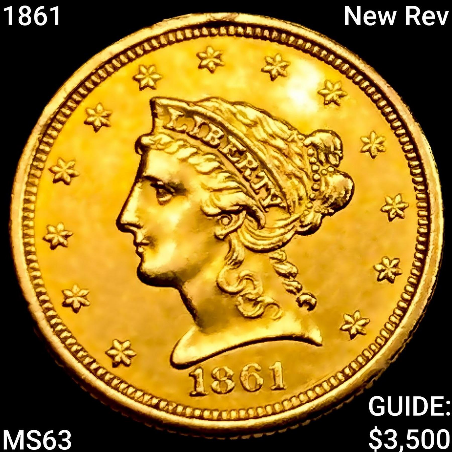 1861 New Rev $2.50 Gold Quarter Eagle CHOICE BU