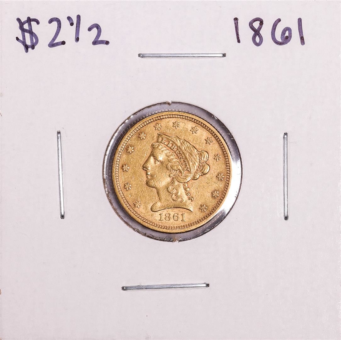 One 1861 New Reverse $2 1/2 Liberty Head Quarter Eagle Gold Coin.