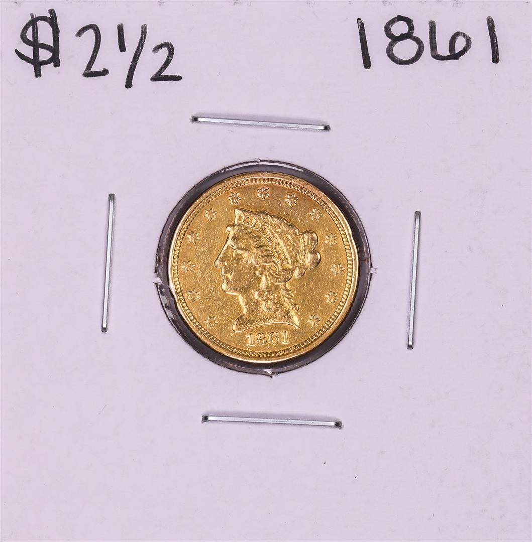 One 1861 New Reverse $2 1/2 Liberty Head Quarter Eagle Gold Coin.