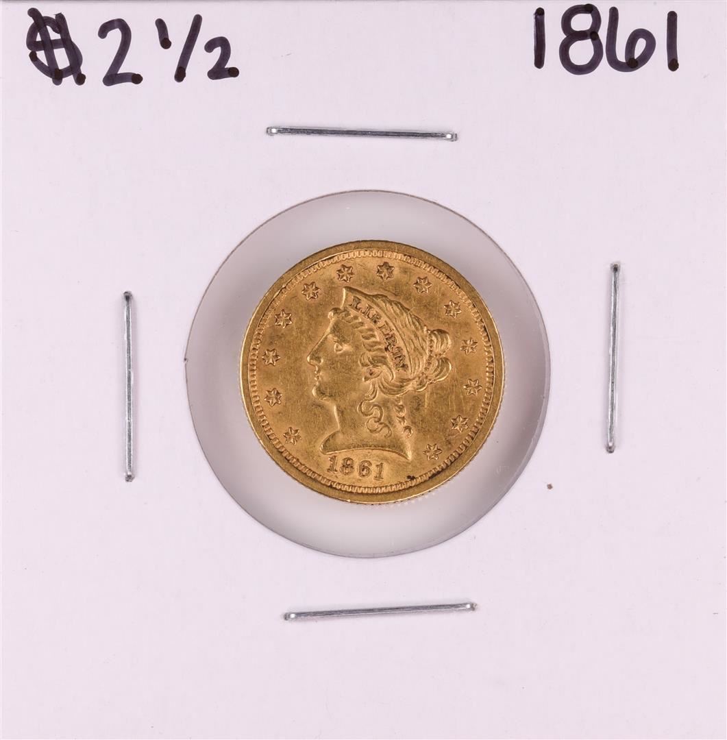 One 1861 No Motto New Reverse $2 1/2 Liberty Head Quarter Eagle Gold Coin.