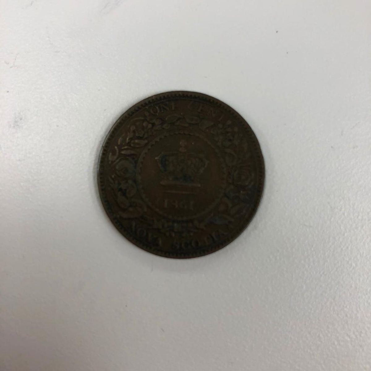 Obverse The portrait of laureate Queen Victoria, facing left Lettering: VICTORIA D:G: BRITT:REG:F:D: Engraver: William Wyon Reverse An imperial crown with mayflowers. There are variations, read the comments. Look for small or large bud to right of SCOTIA Lettering: ONE CENT 1861 NOVA SCOTIA Engraver: Horace Morehen Specifications Country: Canadian provinces (Nova Scotia) (Canada) Type: Standard circulation coin Years: 1861-1864 Value: 1 Cent (0.01) Currency: Dollar (1860-1871) Composition: Bronze Weight: 5.67 g Diameter: 25.53 mm Thickness: 1.41 mm Shape: Round Orientation: Medal alignment ↑↑ Demonetized: Yes