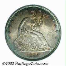 <table><tr><td><TABLE cellSpacing=0 cellPadding=0 width="100%" bgColor=#000000 border=0><TBODY> <TR><TD width="100%"><TABLE cellSpacing=1 cellPadding=3 width="100%" border=0><TBODY><TR><TD width="100%" bgColor=#79735c><FONT face=arial color=#ffffff size=3><B>Description</B> </FONT></TD></TR><TR><TD width="100%" bgColor=#ffffff><FONT face=arial size=2><B>1861-O 50C MS64 PCGS.</B></I> In 1861 at the New Orleans mint, halves were struck for both Union and CSA authorities. This date holds a particular charm among collectors for that reason. Well struck and lustrous throughout, some rich red-golden color gradually deepens to cobalt-blue at the borders. For pedigree purposes, a tiny toning spot is seen in the field above the OL of DOLLAR on the reverse. Population: 15 in 64, 9 finer (4/03). </FONT></TD></TR></TBODY></TABLE></TD></TR></TBODY></TABLE><BR><A name=PricesRealized></A><TABLE cellSpacing=0 cellPadding=0 width="100%" bgColor=#000000 border=0><TBODY><TR><TD width="100%"><TABLE cellSpacing=1 cellPadding=3 width="100%" border=0><TBODY><TR><TD width="100%" bgColor=#79735c><A name=PR><FONT face=arial color=#ffffff size=3><B>Previous Prices from Heritage Auctions</B> </FONT></A></TD></TR><TR><TD bgColor=#f6f6ed><TABLE cellSpacing=0 cellPadding=0 width="100%" border=1><TBODY><TR><TD align=middle width="33%"><B>Date</B></TD><TD align=middle width="33%"><B>Service</B></TD><TD align=middle width="33%"><B>Price</B></TD></TR><TR bgColor=whitesmoke><TD width="33%"><B>11/23/2002</B></TD><TD width="33%">PCGS</TD><TD width="33%">$1,667.50</TD></TR><TR bgColor=whitesmoke><TD width="33%"><B>08/13/1999</B></TD><TD width="33%">PCGS</TD><TD width="33%">$1,449.00</TD></TR><TR bgColor=whitesmoke><TD width="33%"><B>06/04/1999</B></TD><TD width="33%">PCGS</TD><TD width="33%">$1,495.00</TD></TR><TR bgColor=whitesmoke><TD width="33%"><B>06/01/2001</B></TD><TD width="33%">PCGS</TD><TD width="33%">$2,214.00</TD></TR></TBODY></TABLE></TD></TR><TR><TD bgColor=#ffffff><FONT face=arial size=1 ?>PLEASE NOTE: All prices realized reflect the final hammer price PLUS the buyer's premium in auctions that charge a buyer's premium. Each item has a notation at the top of the listing indicating whether that lot included a buyer's premium. Example: A item that sells with a final hammer price of $100 and a 20% buyer's premium will display with a price realized of $120. All information listed is intended to be as accurate as possible, but errors are possible. Please use this guide carefully and inform us of any inaccuracies. </FONT></TD></TR></TBODY></TABLE></TD></TR></TBODY></TABLE><BR><TABLE cellSpacing=0 cellPadding=0 width="100%" bgColor=#000000 border=0><TBODY><TR><TD width="100%"><TABLE cellSpacing=1 cellPadding=3 width="100%" border=0><TBODY><TR><TD width="100%" bgColor=#79735c colSpan=6><FONT face=arial color=#ffffff size=3><B>Price Guide*</B> </FONT></TD></TR><TR bgColor=#f6f6ed><TD align=middle><B>Grade</B> </TD><TD align=middle><B>Coin World<BR>(Trends)</B> </TD><TD align=middle><B>Numismedia<BR>Retail</B> </TD><TD align=middle><B>Numismedia<BR>Wholesale</B> </TD><TD align=middle><B>Coin<BR>Universe</B> </TD><TD align=middle><B>Heritage<BR>Value Index</B> </TD></TR><TR bgColor=#ffffff><TD align=middle>63</TD><TD align=right>$800.00</TD><TD align=right>$950.00</TD><TD align=right>$790.00</TD><TD align=right>$850.00</TD><TD align=right>$673.13</TD></TR><TR style="FONT-WEIGHT: bold" bgColor=#cccfdd><TD align=middle>64</TD><TD align=right>$2,050.00</TD><TD align=right>---</TD><TD align=right>$1,700.00</TD><TD align=right>$2,250.00</TD><TD align=right>$1,436.25</TD></TR><TR bgColor=#ffffff><TD align=middle>65</TD><TD align=right>---</TD><TD align=right>---</TD><TD align=right>$4,875.00</TD><TD align=right>$6,500.00</TD><TD align=right>$4,325.00</TD></TR><TR bgColor=#ffffff><TD colSpan=6><FONT size=1>*All information listed is intended to be as accurate as possible, but errors are possible. No item may be returned or refused based on this information which is provided as a service to our customers. You should contact each pricing source directly to determine the accuracy of this information. </FONT></TD></TR></TBODY></TABLE></TD></TR></TBODY></TABLE><BR><TABLE cellSpacing=0 cellPadding=0 width="100%" bgColor=#000000 border=0><TBODY><TR><TD width="100%"><TABLE cellSpacing=1 cellPadding=3 width="100%" border=0><TBODY><TR><TD width="100%" bgColor=#79735c><FONT face=arial color=#ffffff size=3><B>Population Guide</B> </FONT></TD></TR><TR bgColor=#ffffff><TD align=middle><!-- Begin Output of Population Grid--><TABLE cellSpacing=0 cellPadding=0 width="100%" border=0><TBODY><TR><TD vAlign=center><TABLE cellSpacing=0 width="100%" border=1 cellsadding="3"><TBODY><TR><TD vAlign=center><TABLE cellSpacing=0 cellPadding=3 width="100%" border=1><TBODY><TR><TD vAlign=center align=middle bgColor=#f0f1e8 colSpan=2 <CENTER><FONT face=Arial size=2><B>PCGS Pop </B></FONT><CENTER></CENTER></TD><TD vAlign=center align=middle bgColor=#f0f1e8 colSpan=2><CENTER><FONT face=Arial size=2><B>NGC Pop</B></CENTER></FONT></TD></TR><TR><TD vAlign=center><FONT face=Arial size=2>(64)</FONT> </TD><TD vAlign=center align=right><FONT face=Arial size=2>15</FONT> </TD><TD vAlign=center><FONT face=Arial size=2>(64)</FONT> </TD><TD vAlign=center align=right><FONT face=Arial size=2>33</FONT> </TD></TR><TR><TD vAlign=center><FONT face=Arial size=2>(>64)</FONT> </TD><TD vAlign=center align=right><FONT face=Arial size=2>11</FONT> </TD><TD vAlign=center><FONT face=Arial size=2>(>64)</FONT> </TD><TD vAlign=center align=right><FONT face=Arial size=2>10</FONT> </TD></TR></TBODY></TABLE></TD></TR></TBODY></TABLE></TD></TR></TBODY></TABLE><!-- End Output of Population Grid--></TD></TR></TBODY></TABLE></TD></TR></TBODY></TABLE><BR><TABLE cellSpacing=0 cellPadding=0 width="100%" bgColor=#000000 border=0><TBODY><TR> Important notice: Heritage usually auctions material at the rate of 200-250 lots per hour. On some occasions eBay Live bid software or the Internet may not be able to