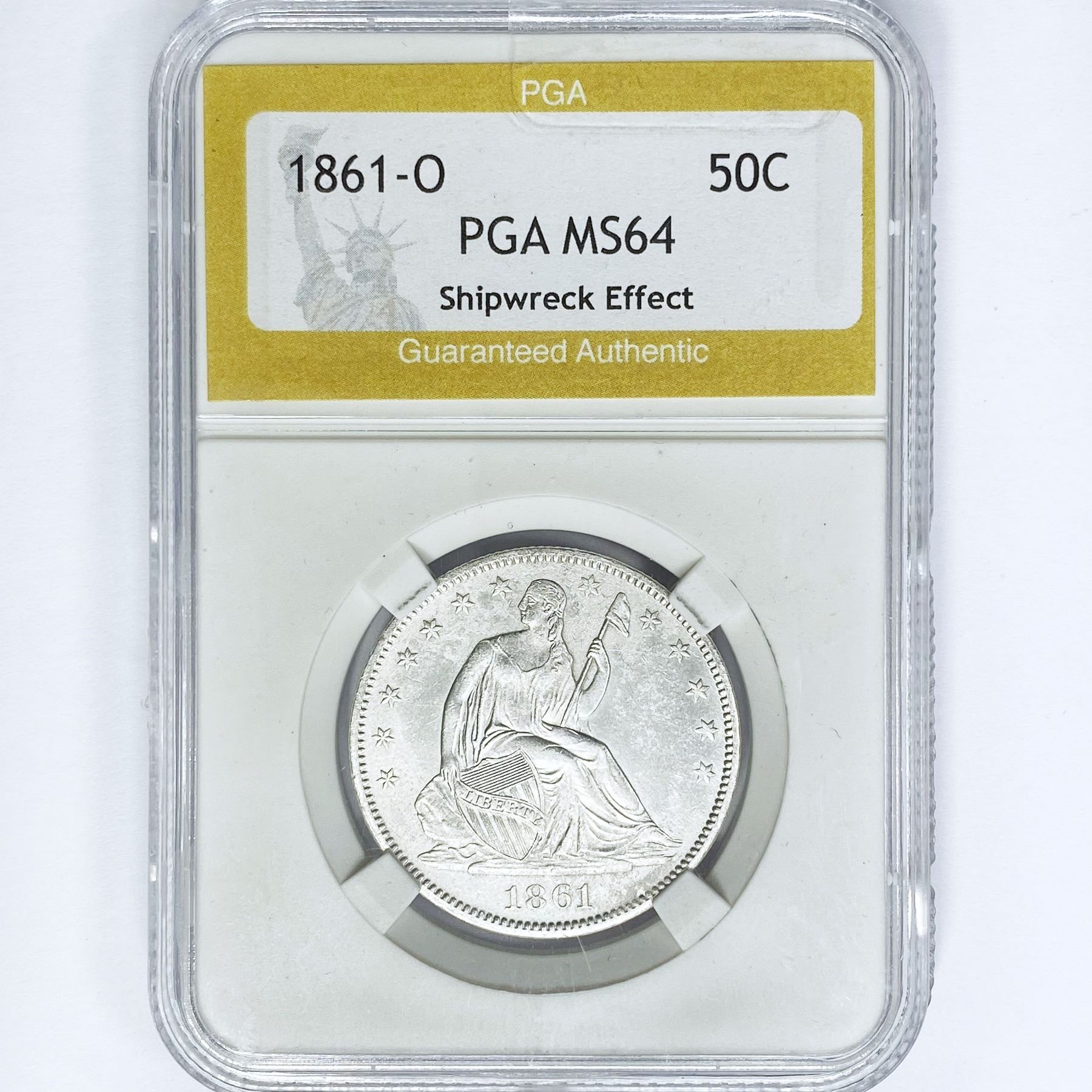 1861-O 50C Seated Lib. PGA MS64 Shipwreck Effect