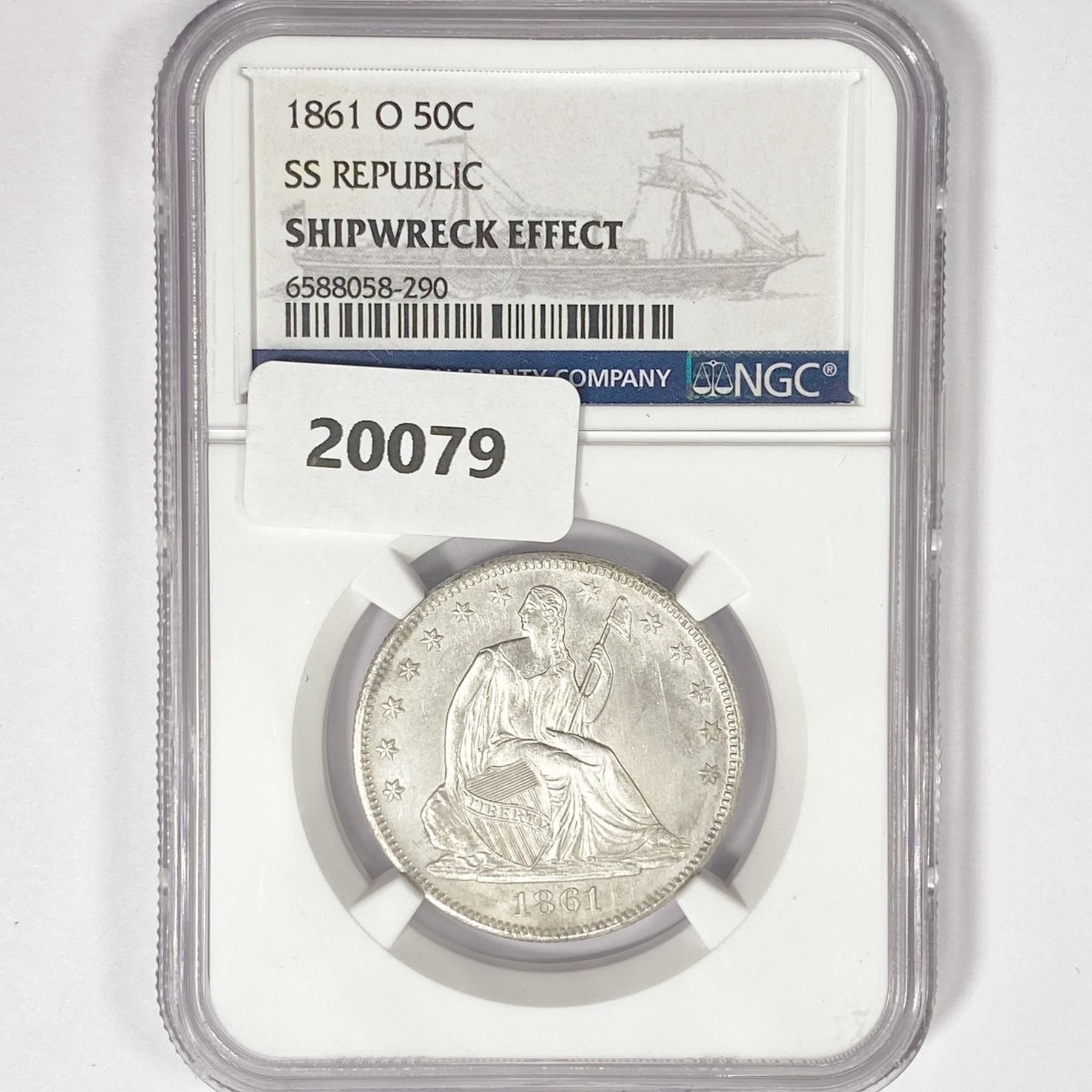 1861-O Seated Lib. 50C NGC Shipwreck SS Rep Set
