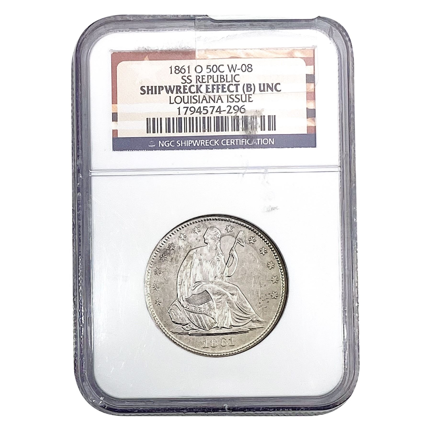 1861-O Seated Liberty Half Dollar NGC Shipwreck