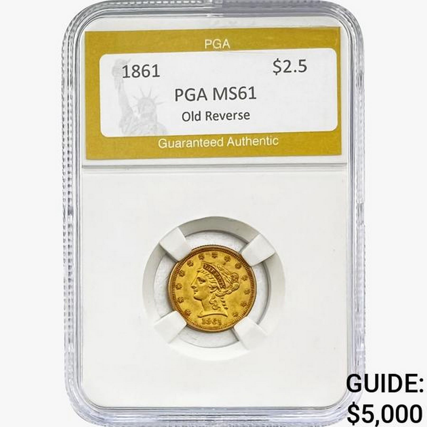 1861 OLD REVERSE $2.50 Gold Quarter Eagle PGA MS61
