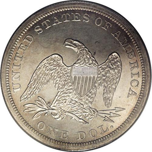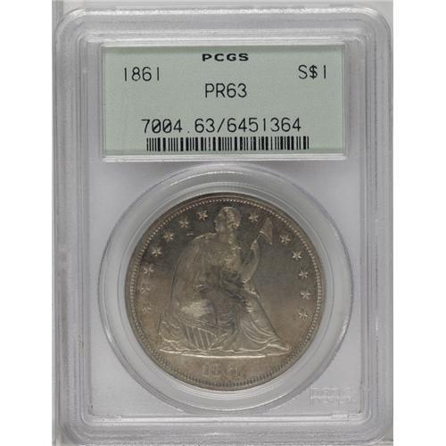 1861 S$1 PR63 PCGS. Although 1,000 proofs are reported