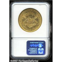 1861-S $20 MS61 NGC. Given the rarity and the fame of its Paquet Reverse counterpart, it should not be surprising that the 1861-S is an overlooked issue. It is actually quite scarce, and ranks as one of the rarer San Francisco Type One Double Eagles in Mint State. While this piece lacks full luster, it is, nonetheless, a bright coin that has rich orange-gold coloration. Well struck over most of the devices, except for the first three obverse stars, the overall number of post-striking impairments is small, for the grade, but a few of the marks are rather heavy. Population: 20 in 61, 4 finer (11/03). Important notice: Heritage usually auctions material at the rate of 200-250 lots per hour. On some occasions eBay Live bid software or the Internet may not be able to keep up with the pace of the auction. We recommend placing a realistic absentee bid now as insurance to avoid disappointment. Occasionally the auctioneer may eliminate or reject an eBay Live bid, and the auctioneer may also reopen a lot after the close of the eBay live bidding (usually because we missed an audience bid), and may reject your bid even if it shows you as the winning bidder. By bidding via eBay Live, you agree that Heritage may award the lot to another bidder at its sole discretion under the circumstances described above or any other reasonable circumstances. Also please note that all Heritage lots purchased through eBay Live carry a 20% Buyer's Premium. Please make sure you read the Terms and Conditions before you bid.