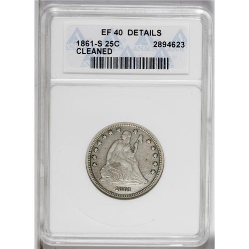 1861-S 25C --Cleaned--ANACS. XF40 Details. A slick tin-