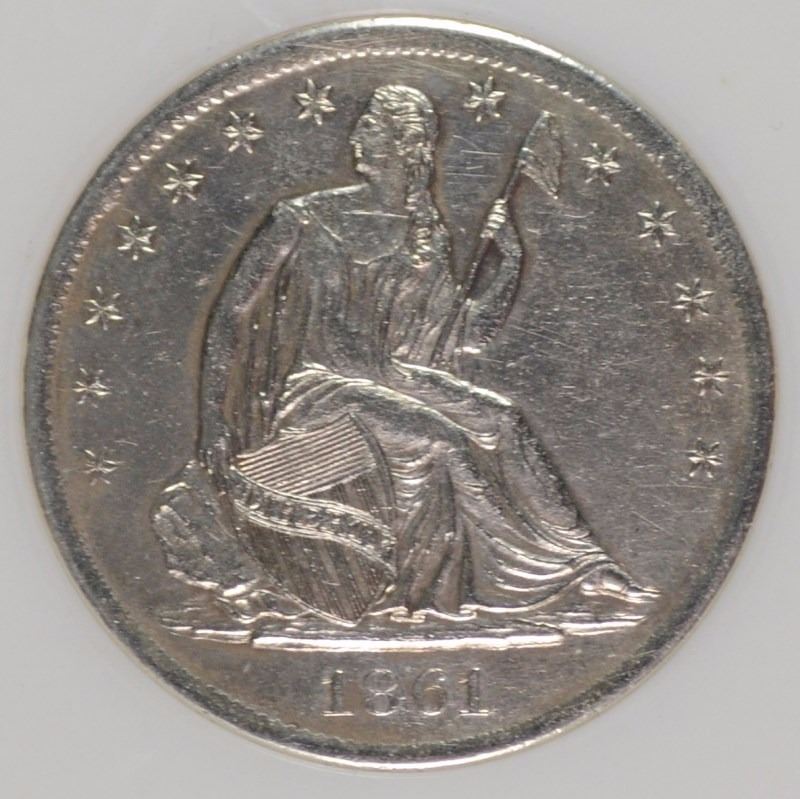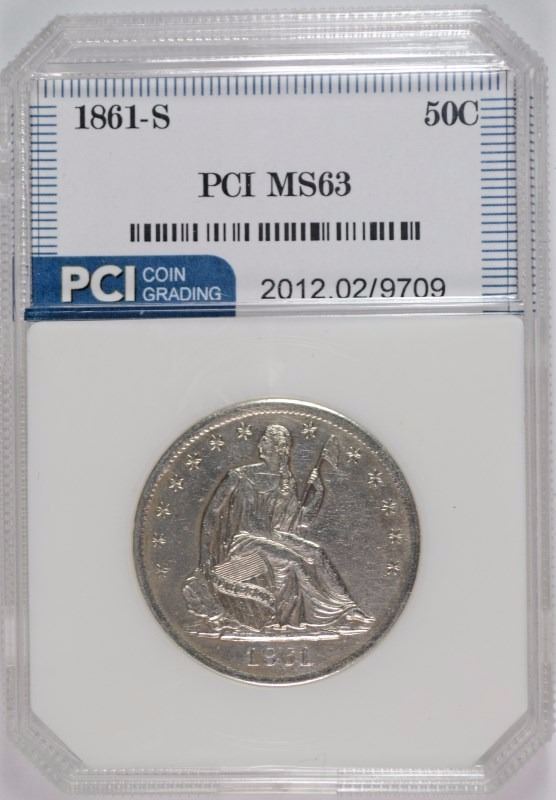 1861-S SEATED LIBERTY HALF DOLLAR, PCI CHOICE BU BLAST WHITE CIVIL WAR DATE!