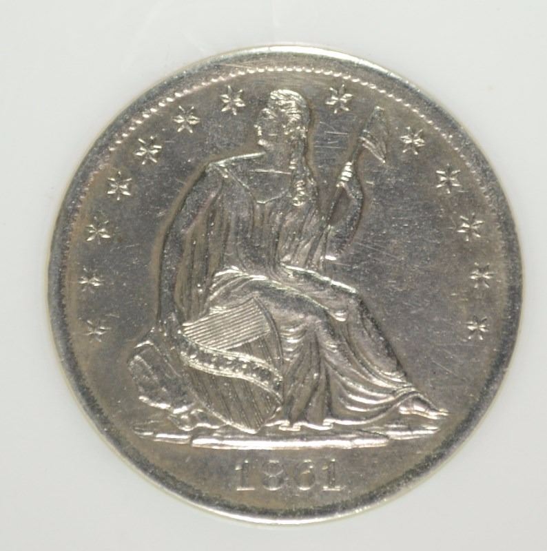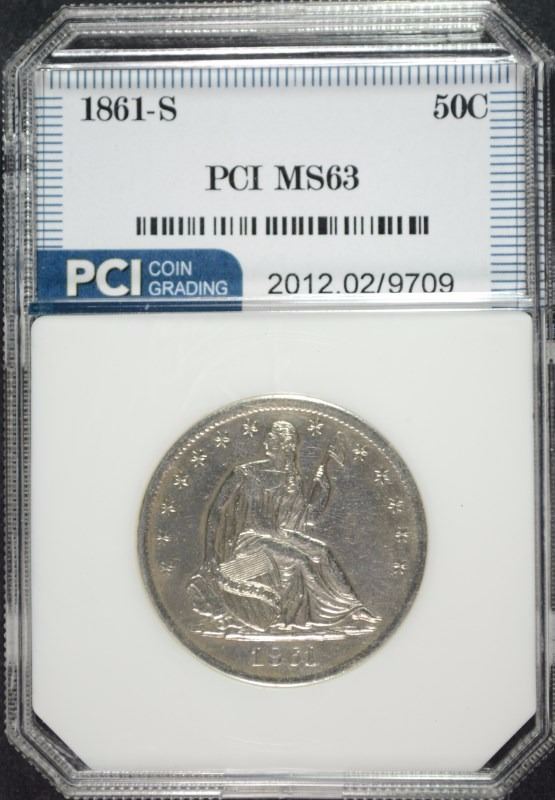 1861-S SEATED LIBERTY HALF DOLLAR, PCI CHOICE BU BLAST WHITE CIVIL WAR DATE!